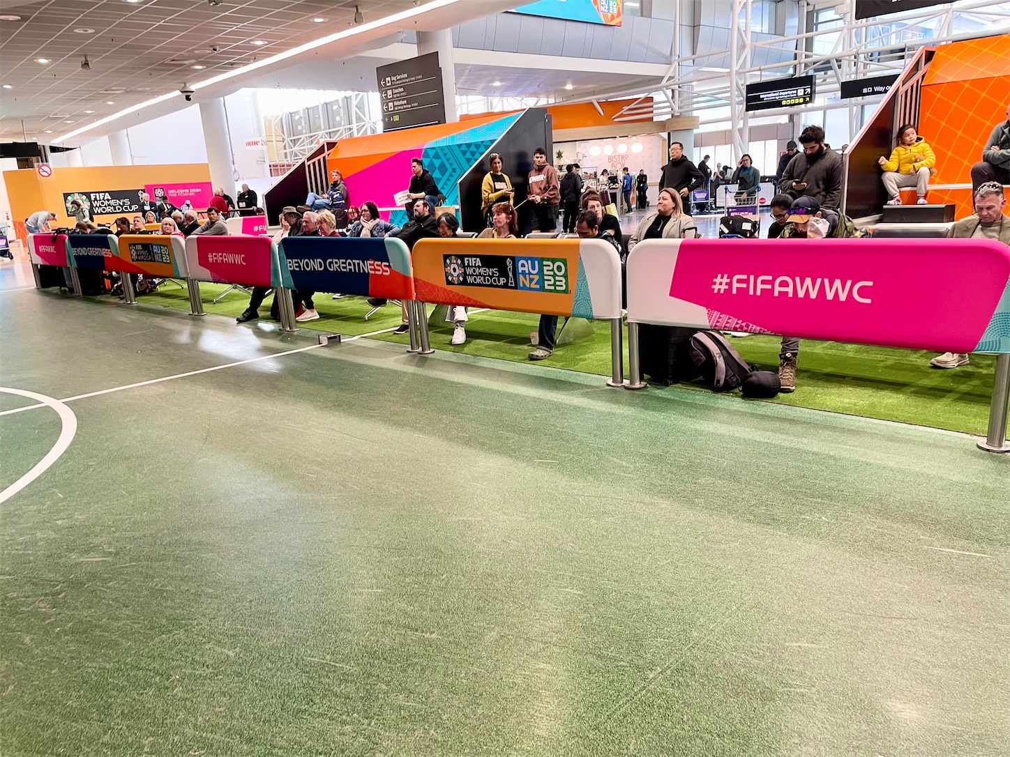 オークランド空港に到着してゲートを出ると、FIFA Women's World Cup2023仕様になっていました。